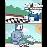 Chess player loses on time, and does a double-head slap - Chess Head Pat Meme